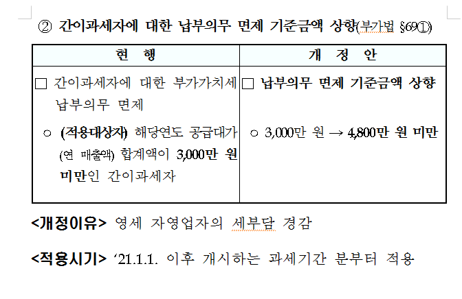 (적용시기) 21. 1. 1 이후 개시하는 과세기간 분 부터 적용