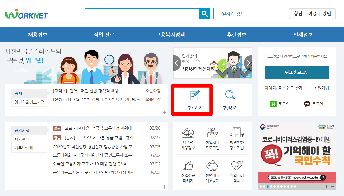 워크넷싸이트에가서 구직등록 신청을 해야함