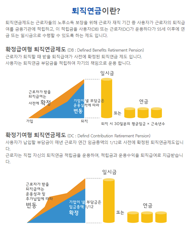 퇴직연금은 DB형(확정급여형)과 DC형(확정기여형)으로 나누어 지는데