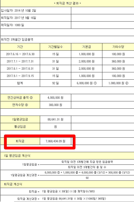 퇴직금계산기에서 계산되는 퇴직금은 엄밀히 말하면
