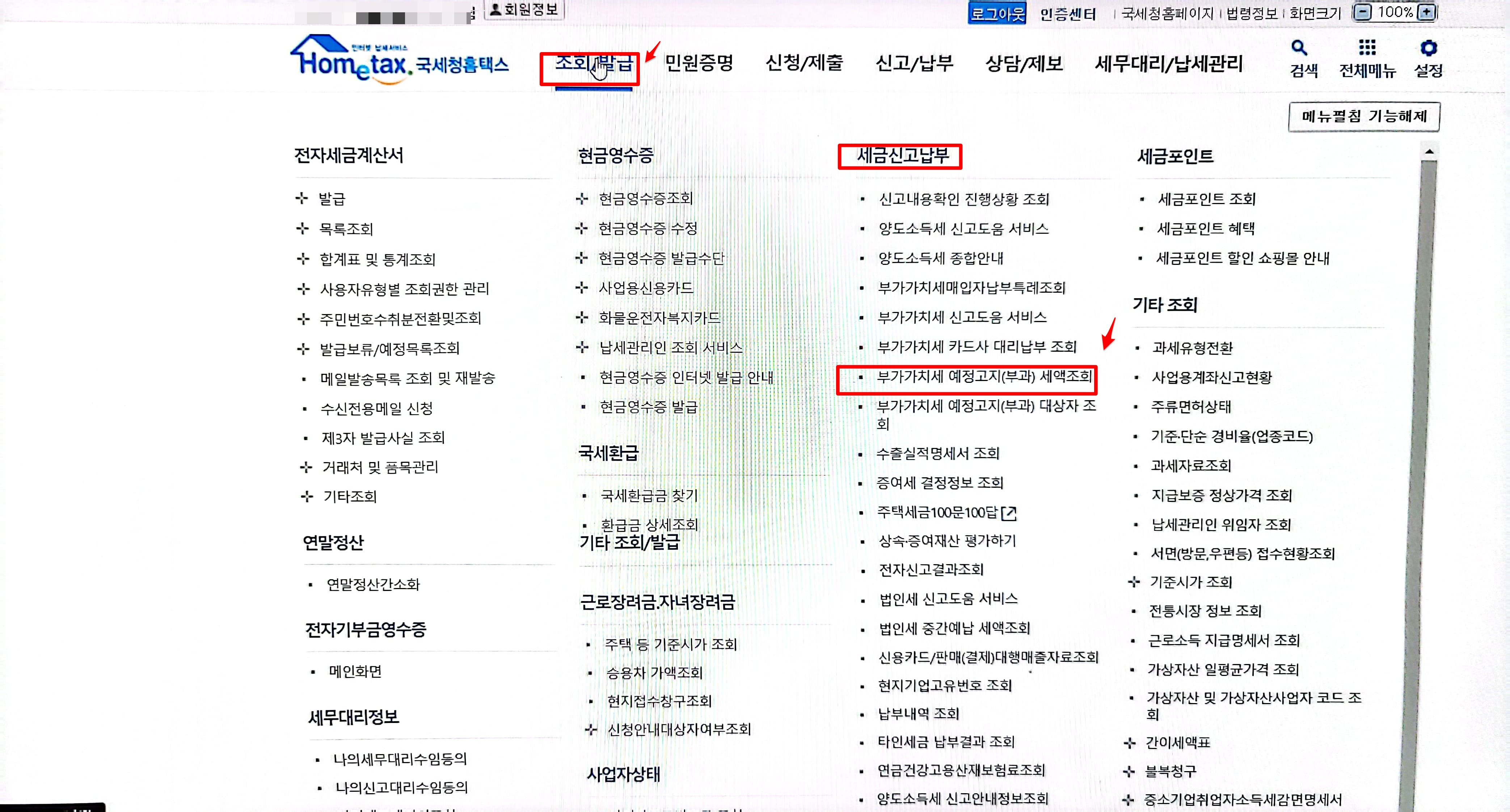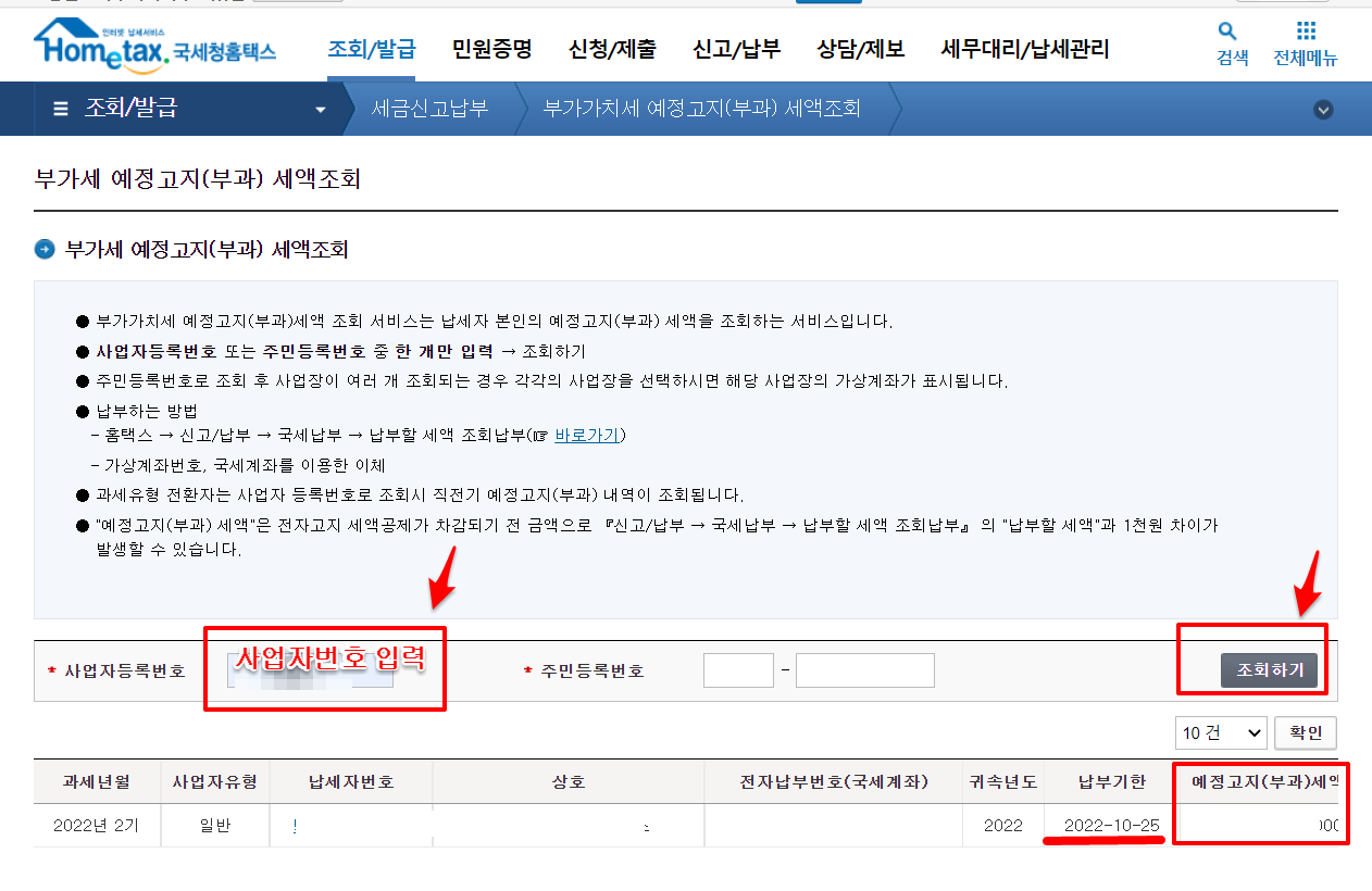 부가세 예정고지 세액 조회 방법