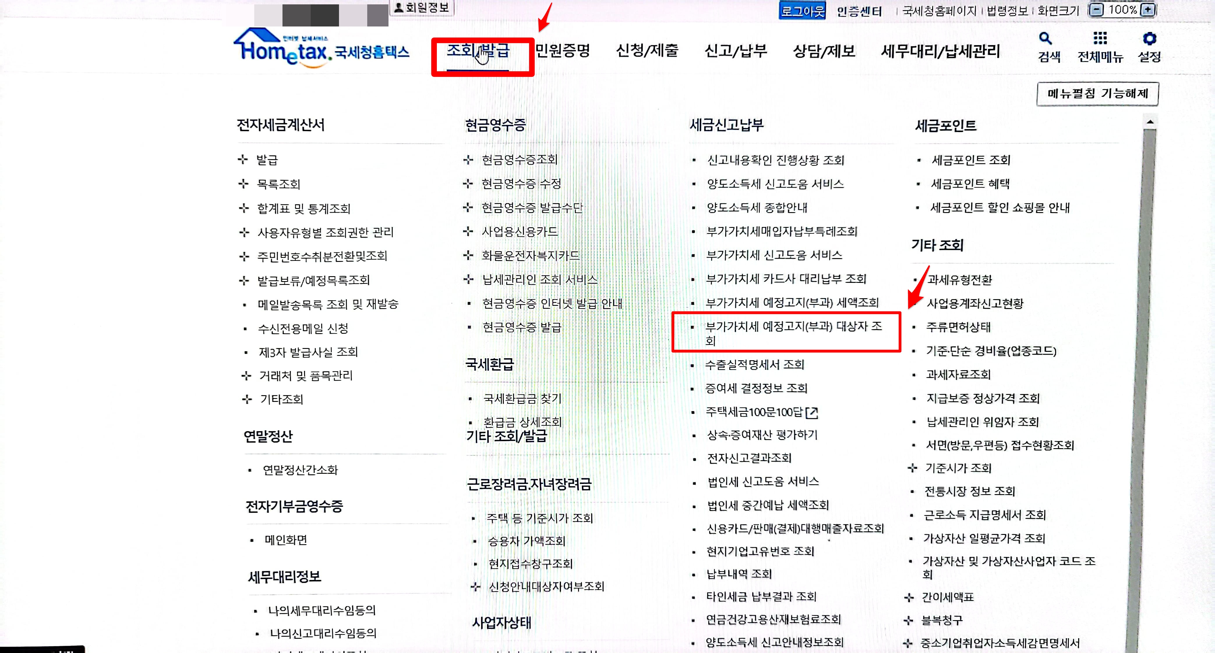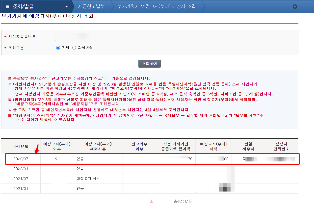 부가세 예정고지 대상자 조회 방법