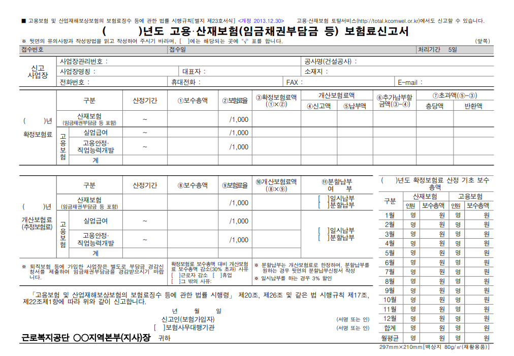 * 고용 산재보험(임금채권 부담금 등) 보험료 신고서 사용