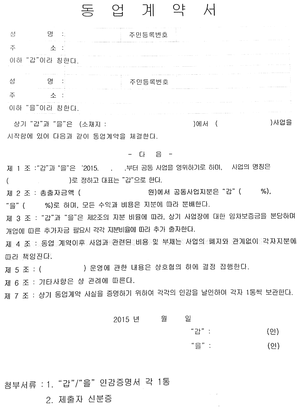 4. 동업의 경우에는 동업계약서 (공동사업자인 경우)