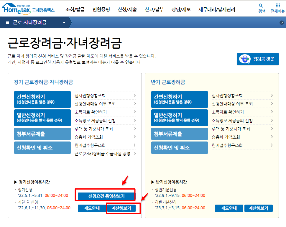 근로장려금 계산해보기, 동영상보기를 해보셔요~